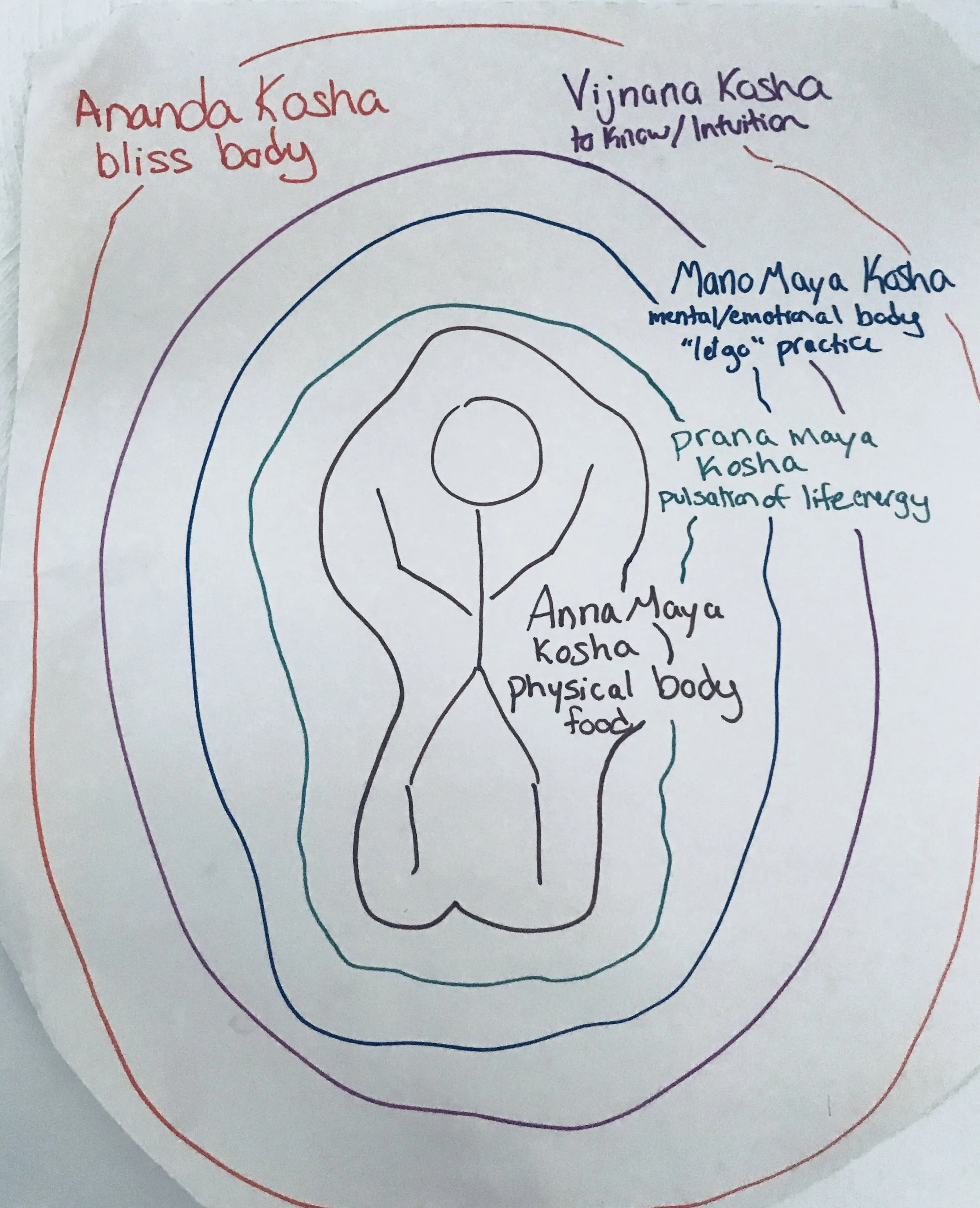 In a paradigm I held earlier in life, people were inherently flawed and only sometime later in our existence (after death) would we truly be able to experience bliss/heaven. Yoga teaches that we need not wait, we can experience bliss now! If you’re stuck in your own mind it can feel like “hell”. As yogis we do not try to solve our mind problems with our mind. We choose to connect other Koshas, breath and body, to shift the mind layer. The Koshas are a beautiful system to live by. Koshas are layers or “sheaths” that yoga teaches make up the human body. If you are in health coaching you already know this, for everyone else I may write more on the topic later.